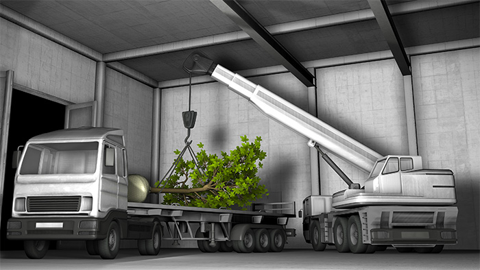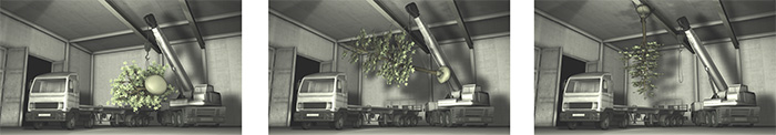 The visitors find themselves in a forest hanging from the ceiling. Here they experience the appearance of the primal forest up to the threatening present day destruction of our environment, in fast motion. A focus is set on the relationship between the forest and mankind, within the varying facets of Human culture.