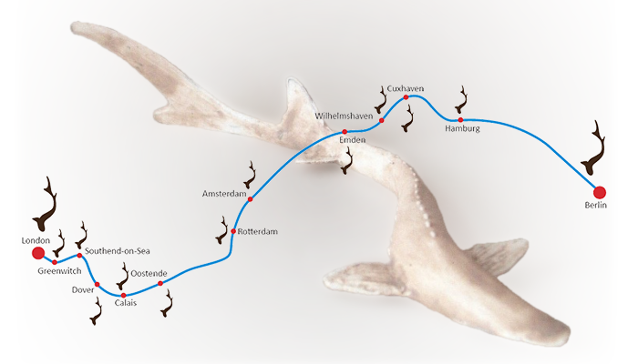 A solar-powered e-boat with a six-metre sturgeon sculpture mounted on its deck would travel from Berlin to London. The sturgeon is coated in solar-sensitive paint and in its wake, is mounted a swarm of small kite like fish, flying in the breeze, symbolizing the new generations to come. The boat would sail up the waterways of Germany to the North Sea, touch on the Netherlands, Belgium and France before finally crossing the Channel, and then pursue the route of the sturgeon up the river Thames to London. On its journey, the sturgeon boat would dock at prearranged points. Here the full range of the awareness campaign would be offered to different organized audiences, from school children and teachers to the general public.